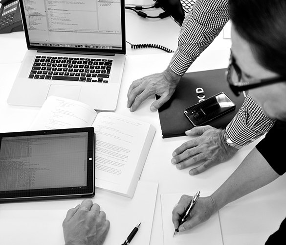 Mitarbeiter:innen arbeiten an unseren Kundenprojekten